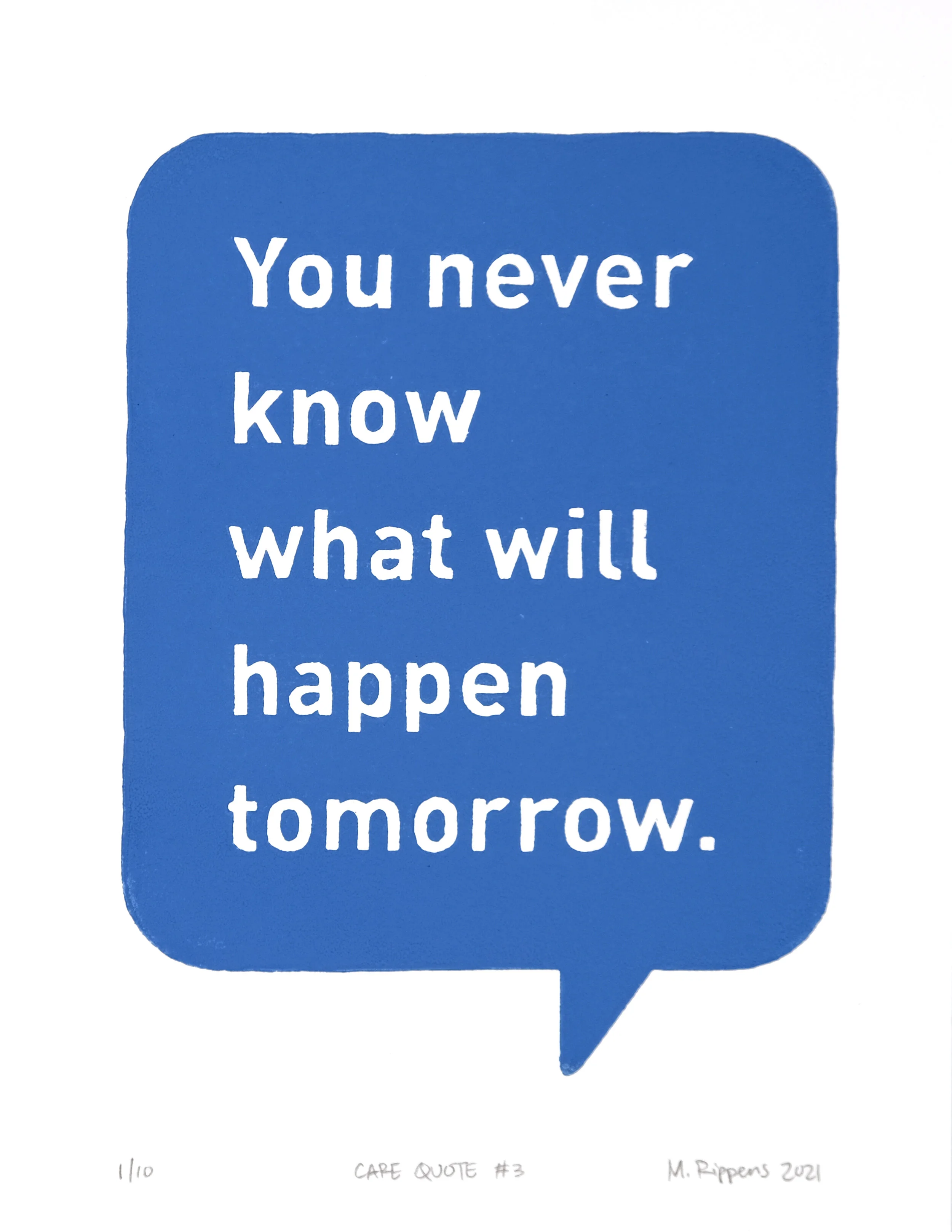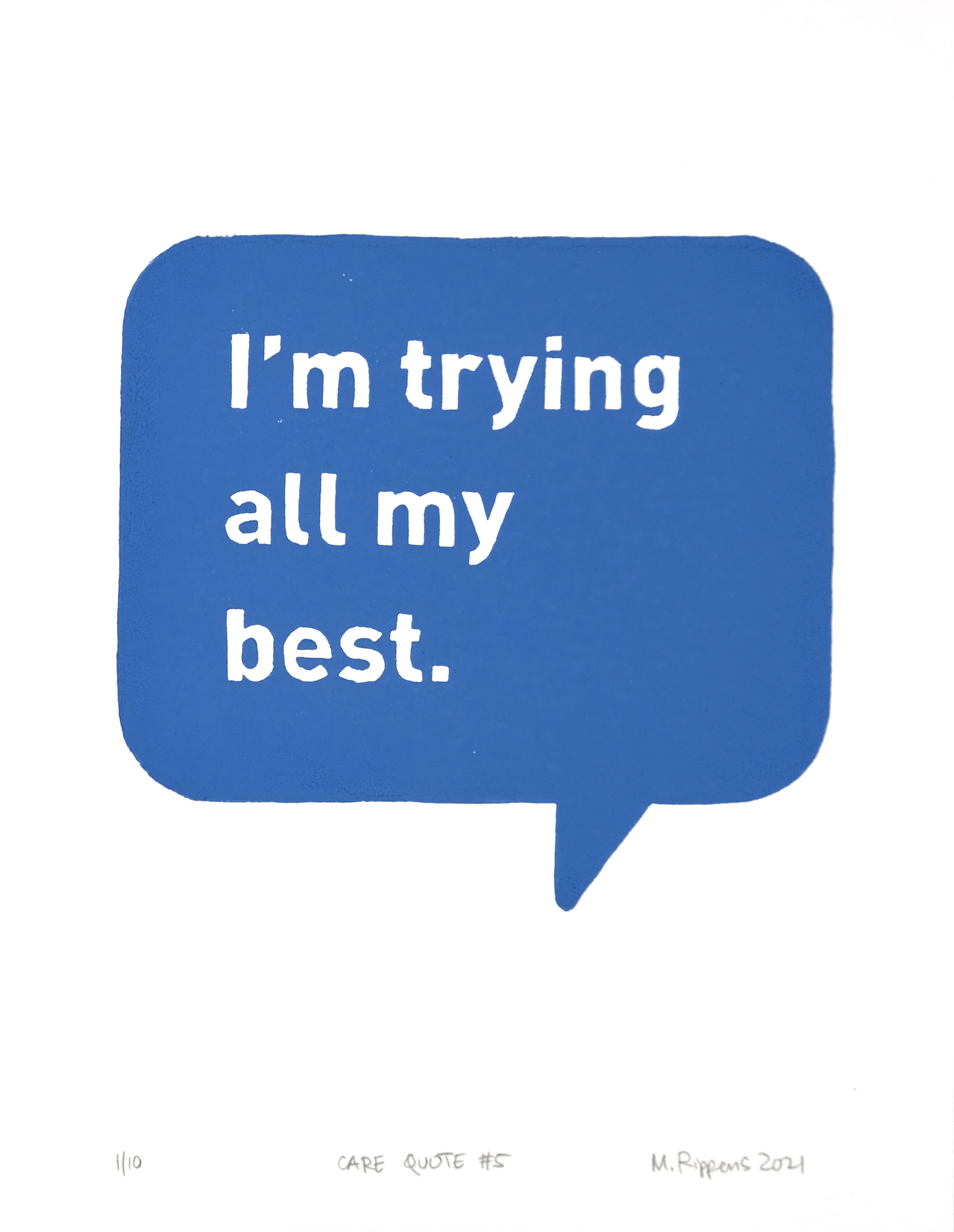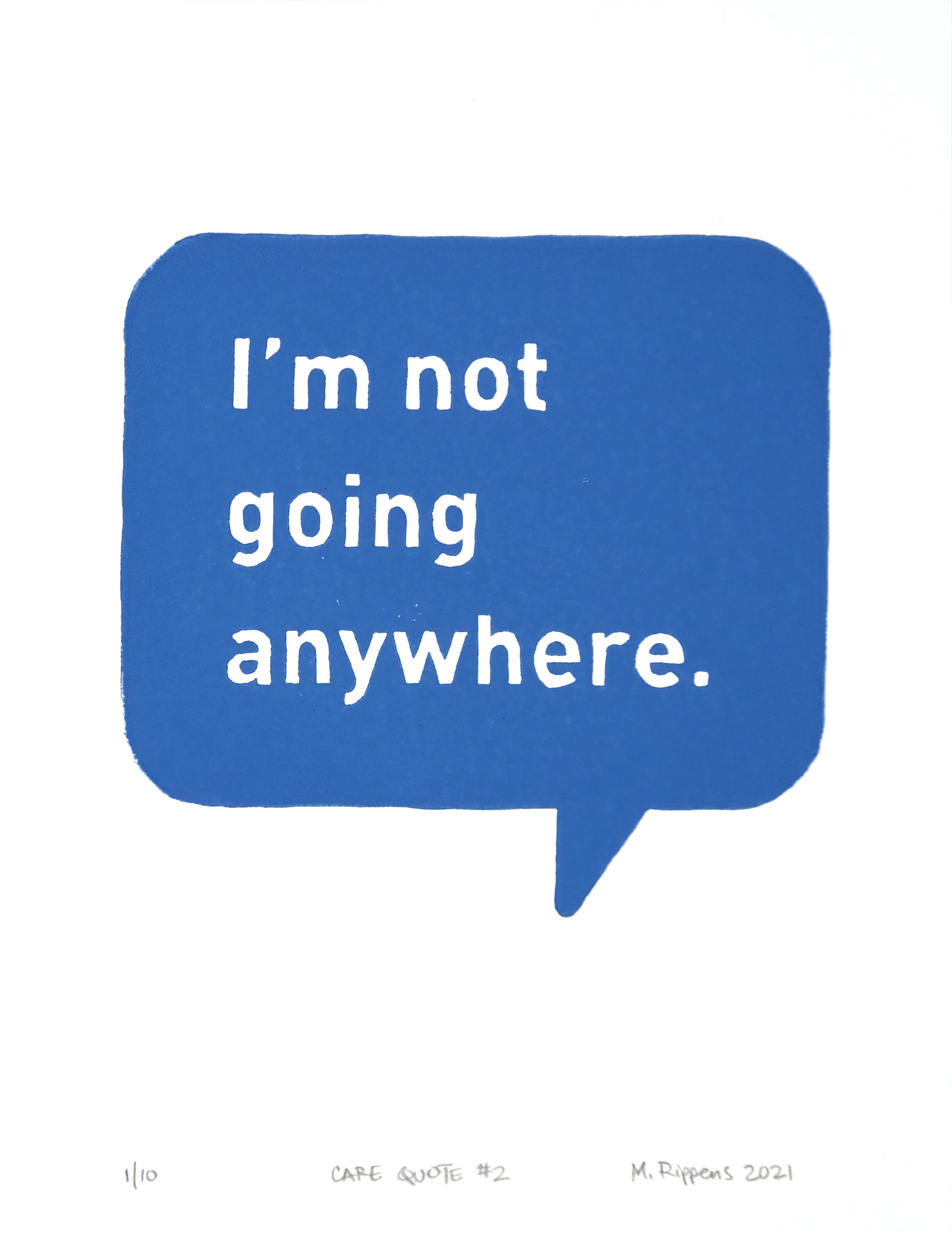 To purchase a Care Quote print, email caretalkproject@gmail.com or send a message using this contact form. Framed prints are numbered 1 of 10, unframed prints are numbered 2 of 10. All other first edition Care Quote prints are sold out. Please refer to the images below, and indicate the specific print(s) you are interested in purchasing.